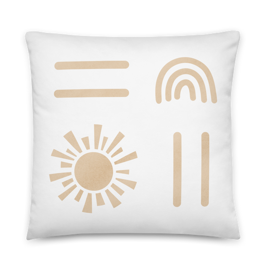 Beige Sun Rainbow Throw Pillow in White