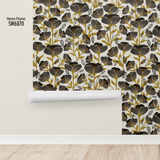 Custom Black Poppies Prepasted Wallpaper